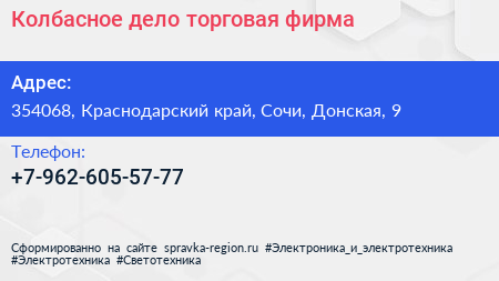 Колбасное дело, торговая фирма по адресу 354068, Краснодарский край, Сочи, Донская, 9 в дальнейшем Организация, размещена в следующих категориях: