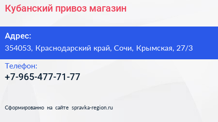 Кубанский привоз, магазин по адресу 354053, Краснодарский край, Сочи, Крымская, 27/3 в дальнейшем Организация, размещена в следующих категориях: