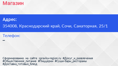 Магазин по адресу 354008, Краснодарский край, Сочи, Санаторная, 25/1 в дальнейшем Организация, размещена в следующих категориях: