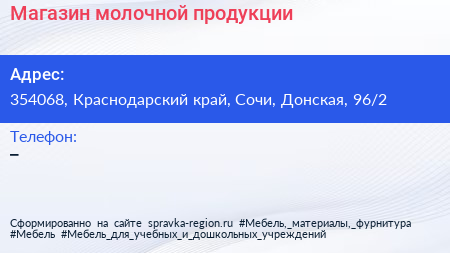 Магазин молочной продукции по адресу 354068, Краснодарский край, Сочи, Донская, 96/2 в дальнейшем Организация, размещена в следующих категориях:
