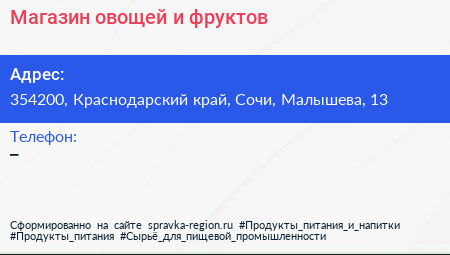 Магазин овощей и фруктов по адресу 354200, Краснодарский край, Сочи, Малышева, 13 в дальнейшем Организация, размещена в следующих категориях: