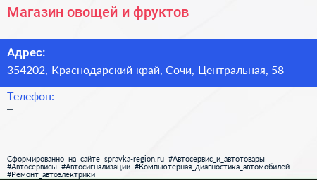 Магазин овощей и фруктов по адресу 354202, Краснодарский край, Сочи, Центральная, 58 в дальнейшем Организация, размещена в следующих категориях:
