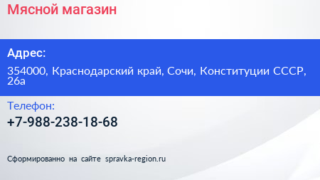 Мясной магазин по адресу 354000, Краснодарский край, Сочи, Конституции СССР, 26а в дальнейшем Организация, размещена в следующих категориях: