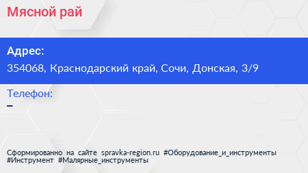 Мясной рай по адресу 354068, Краснодарский край, Сочи, Донская, 3/9 в дальнейшем Организация, размещена в следующих категориях: