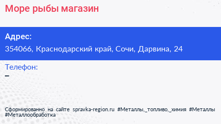 Море рыбы, магазин по адресу 354066, Краснодарский край, Сочи, Дарвина, 24 в дальнейшем Организация, размещена в следующих категориях: