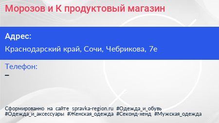 Морозов и К, продуктовый магазин по адресу Краснодарский край, Сочи, Чебрикова, 7е в дальнейшем Организация, размещена в следующих категориях: