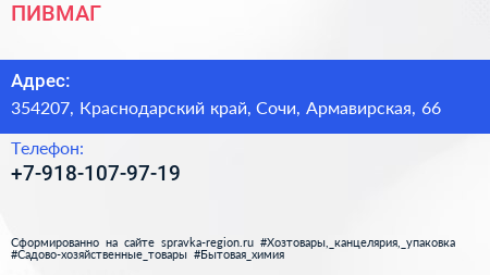 ПИВМАГ по адресу 354207, Краснодарский край, Сочи, Армавирская, 66 в дальнейшем Организация, размещена в следующих категориях: