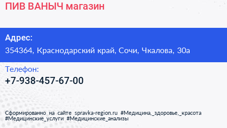 ПИВ`ВАНЫЧ, магазин по адресу 354364, Краснодарский край, Сочи, Чкалова, 30а в дальнейшем Организация, размещена в следующих категориях: