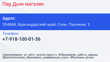 Пар & Дым, магазин по адресу 354068, Краснодарский край, Сочи, Пасечная, 1 в дальнейшем Организация, размещена в следующих категориях: