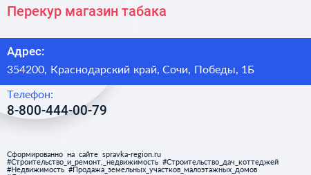 Перекур, магазин табака по адресу 354200, Краснодарский край, Сочи, Победы, 1Б в дальнейшем Организация, размещена в следующих категориях: