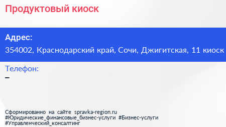 Продуктовый киоск по адресу 354002, Краснодарский край, Сочи, Джигитская, 11 киоск в дальнейшем Организация, размещена в следующих категориях: