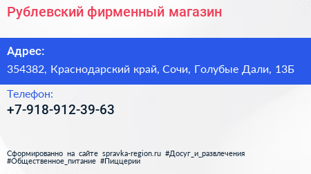 Рублевский, фирменный магазин по адресу 354382, Краснодарский край, Сочи, Голубые Дали, 13Б в дальнейшем Организация, размещена в следующих категориях: