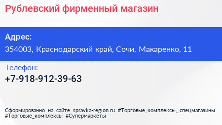 Рублевский, фирменный магазин по адресу 354003, Краснодарский край, Сочи, Макаренко, 11 в дальнейшем Организация, размещена в следующих категориях: