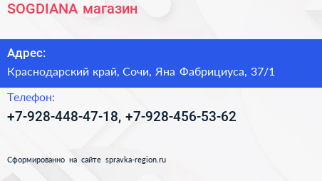 SOGDIANA, магазин по адресу Краснодарский край, Сочи, Яна Фабрициуса, 37/1 в дальнейшем Организация, размещена в следующих категориях: