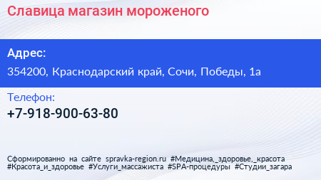 Славица, магазин мороженого по адресу 354200, Краснодарский край, Сочи, Победы, 1а в дальнейшем Организация, размещена в следующих категориях: