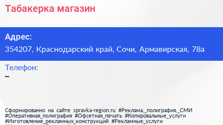 Табакерка, магазин по адресу 354207, Краснодарский край, Сочи, Армавирская, 78а в дальнейшем Организация, размещена в следующих категориях:
