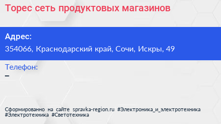 Торес, сеть продуктовых магазинов по адресу 354066, Краснодарский край, Сочи, Искры, 49 в дальнейшем Организация, размещена в следующих категориях: