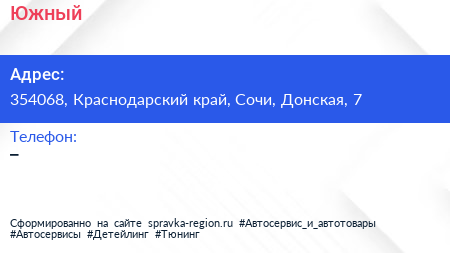 Южный по адресу 354068, Краснодарский край, Сочи, Донская, 7 в дальнейшем Организация, размещена в следующих категориях: