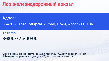 Лоо, железнодорожный вокзал по адресу 354208, Краснодарский край, Сочи, Азовская, 13а в дальнейшем Организация, размещена в следующих категориях: