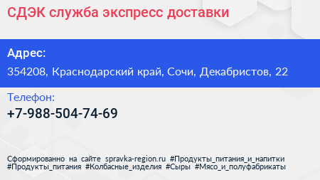 СДЭК, служба экспресс-доставки по адресу 354208, Краснодарский край, Сочи, Декабристов, 22 в дальнейшем Организация, размещена в следующих категориях: