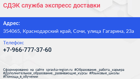 СДЭК, служба экспресс-доставки по адресу 354065, Краснодарский край, Сочи, улица Гагарина, 23а в дальнейшем Организация, размещена в следующих категориях: