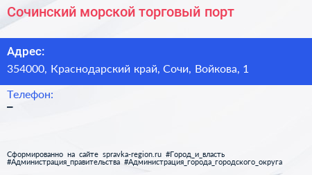 Сочинский морской торговый порт по адресу 354000, Краснодарский край, Сочи, Войкова, 1 в дальнейшем Организация, размещена в следующих категориях: