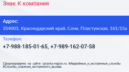 Знак К, компания по адресу 354003, Краснодарский край, Сочи, Пластунская, 161/15а в дальнейшем Организация, размещена в следующих категориях: