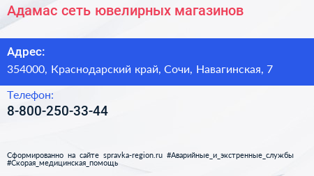 Адамас, сеть ювелирных магазинов по адресу 354000, Краснодарский край, Сочи, Навагинская, 7 в дальнейшем Организация, размещена в следующих категориях: