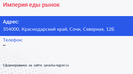 Империя еды, рынок по адресу 354000, Краснодарский край, Сочи, Северная, 12Б в дальнейшем Организация, размещена в следующих категориях: