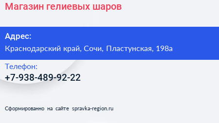 Магазин гелиевых шаров по адресу Краснодарский край, Сочи, Пластунская, 198а в дальнейшем Организация, размещена в следующих категориях: