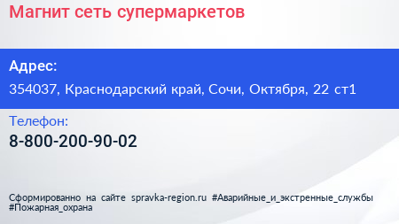 Магнит, сеть супермаркетов по адресу 354037, Краснодарский край, Сочи, Октября, 22 ст1 в дальнейшем Организация, размещена в следующих категориях: