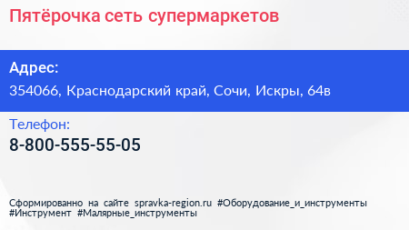 Пятёрочка, сеть супермаркетов по адресу 354066, Краснодарский край, Сочи, Искры, 64в в дальнейшем Организация, размещена в следующих категориях: