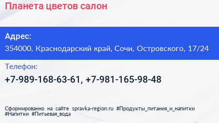Планета цветов, салон по адресу 354000, Краснодарский край, Сочи, Островского, 17/24 в дальнейшем Организация, размещена в следующих категориях: