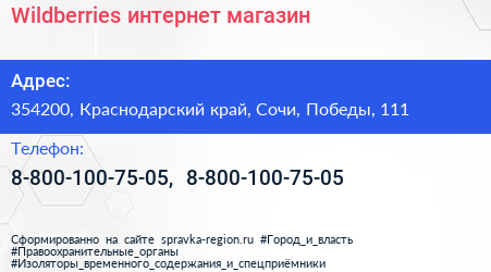 Wildberries, интернет-магазин по адресу 354200, Краснодарский край, Сочи, Победы, 111 в дальнейшем Организация, размещена в следующих категориях: