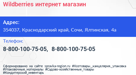 Wildberries, интернет-магазин по адресу 354037, Краснодарский край, Сочи, Ялтинская, 4а в дальнейшем Организация, размещена в следующих категориях: