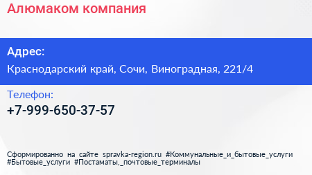 Алюмаком, компания по адресу Краснодарский край, Сочи, Виноградная, 221/4 в дальнейшем Организация, размещена в следующих категориях: