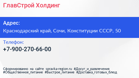 ГлавСтрой Холдинг по адресу Краснодарский край, Сочи, Конституции СССР, 50 в дальнейшем Организация, размещена в следующих категориях: