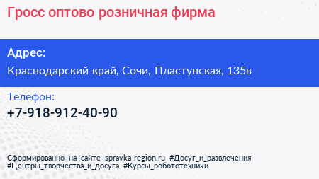 Гросс, оптово-розничная фирма по адресу Краснодарский край, Сочи, Пластунская, 135в в дальнейшем Организация, размещена в следующих категориях: