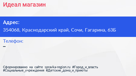 Идеал, магазин по адресу 354068, Краснодарский край, Сочи, Гагарина, 63Б в дальнейшем Организация, размещена в следующих категориях: