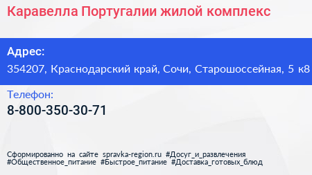 Каравелла Португалии, жилой комплекс по адресу 354207, Краснодарский край, Сочи, Старошоссейная, 5 к8 в дальнейшем Организация, размещена в следующих категориях: