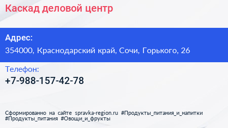 Каскад, деловой центр по адресу 354000, Краснодарский край, Сочи, Горького, 26 в дальнейшем Организация, размещена в следующих категориях: