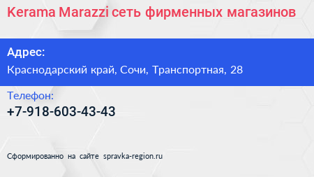 Kerama Marazzi, сеть фирменных магазинов по адресу Краснодарский край, Сочи, Транспортная, 28 в дальнейшем Организация, размещена в следующих категориях: