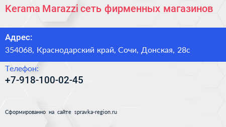 Kerama Marazzi, сеть фирменных магазинов по адресу 354068, Краснодарский край, Сочи, Донская, 28с в дальнейшем Организация, размещена в следующих категориях: