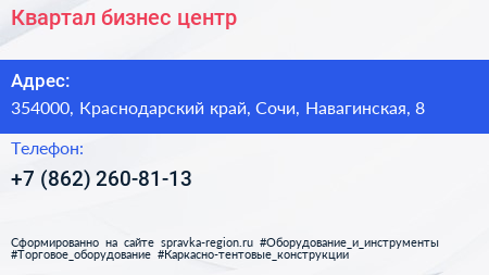 Квартал, бизнес-центр по адресу 354000, Краснодарский край, Сочи, Навагинская, 8 в дальнейшем Организация, размещена в следующих категориях: