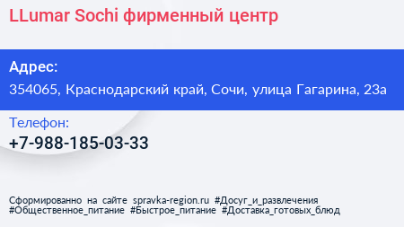 LLumar-Sochi, фирменный центр по адресу 354065, Краснодарский край, Сочи, улица Гагарина, 23а в дальнейшем Организация, размещена в следующих категориях: