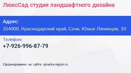 ЛюксСад, студия ландшафтного дизайна по адресу 354000, Краснодарский край, Сочи, Юных Ленинцев, 10 в дальнейшем Организация, размещена в следующих категориях: