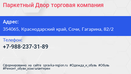Паркетный Двор, торговая компания по адресу 354065, Краснодарский край, Сочи, Гагарина, 82/2 в дальнейшем Организация, размещена в следующих категориях: