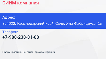 СИИМ, компания по адресу 354002, Краснодарский край, Сочи, Яна Фабрициуса, 1в в дальнейшем Организация, размещена в следующих категориях: