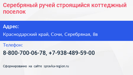 Серебряный ручей, строящийся коттеджный поселок по адресу Краснодарский край, Сочи, Серебряная, 8в в дальнейшем Организация, размещена в следующих категориях: