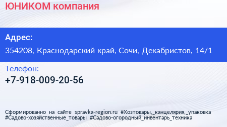ЮНИКОМ, компания по адресу 354208, Краснодарский край, Сочи, Декабристов, 14/1 в дальнейшем Организация, размещена в следующих категориях: